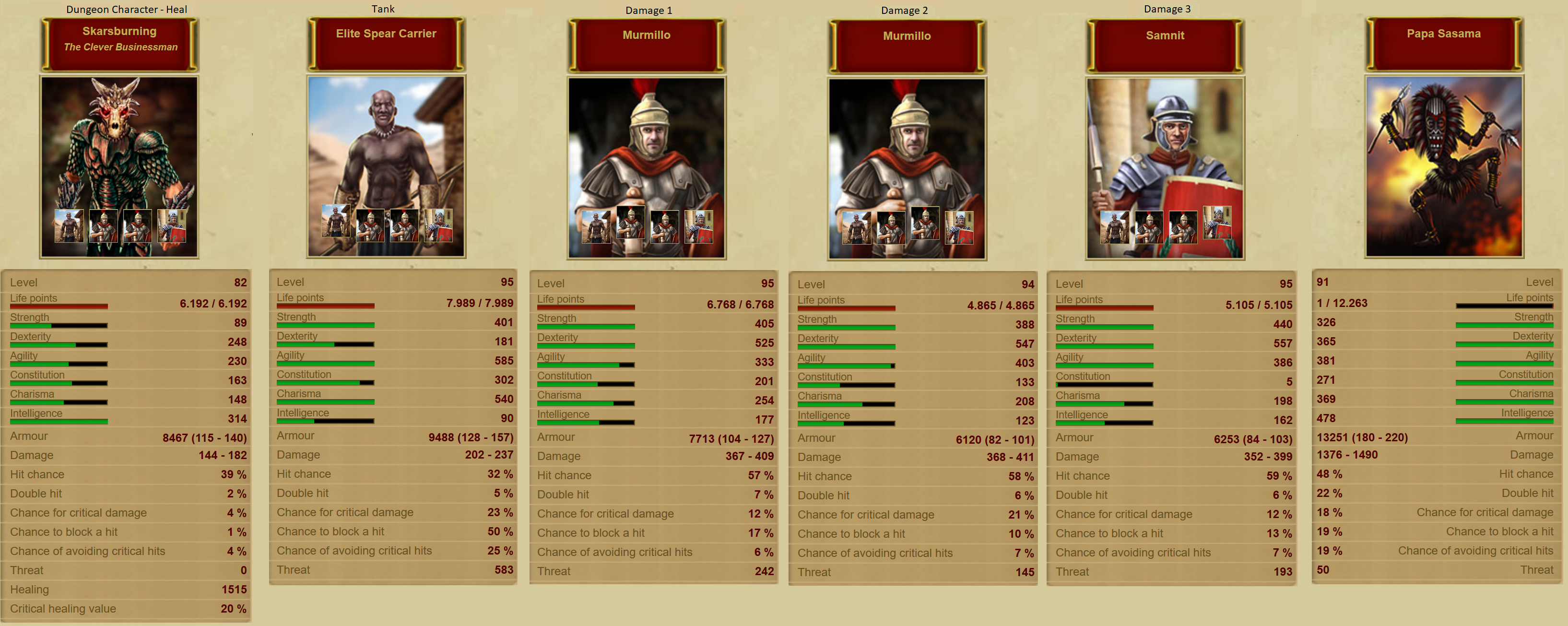 Level on which you can complete: 83-86. If you are beating Zagrash most of the times, you will sometimes beat Papa Sasama. This is the rule. Incredibly hard boss. You need to gear up with multiple Antonius/Gaius/Ichorus gear on your mercenaries and weapons well above 200 damage and some good critical strike. Here is an example of a setup that kills Papa Sasama on level 82 - here. Note that this setup does not farm Papa Sasama and is a very early kill (in terms of gear) and you will need a lot better to farm him or defeat him efficiently.